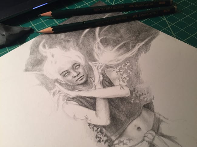 Elsewhere on the IX agenda, this year has welcomed more artists than ever before to take part in the annual IX event, with first-time attendees including George Pratt, Tenaya Sims and the Shiflett Brothers. Pat and Jeannie (along with millions of followers) have been watching in anticipation for the first new blooms of original art to unfold as the past few months have seen artists start to share their WIPs and finished pieces ready to be displayed at IX 10 this October. One such piece is ‘The Moon Wrapped in her Gauzy Veil’ by British artist Marc Potts (oils over acrylics), a gently chilling dedication to the Lady of the Moon. Victoria Steele‘s ‘A Vision of the Past’ (oil on panel) thrums with energy, whispering of the esoteric as she skilfully amalgamates still life with portraiture, and Benjamin Davis’ WIP is the perfect tease to his collection of works which will be on sale at the Showcase in the Doubltree Hilton Hotel.