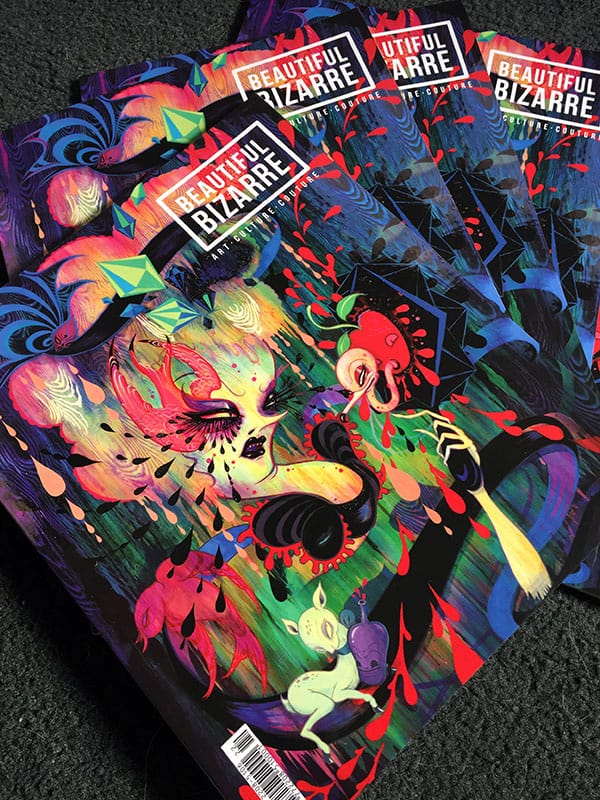 The release of the 22nd issue of Beautiful Bizarre Magazine is a mere days away now, and I am so incredibly proud of this issue! Proud of the brilliant and inspiring artists whom I have had the pleasure and honour of working with, who bravely share their creative souls with the world. Proud of the work of the writers and contributors who so eloquently share the artists’ stories and voices with you and, of course, proud of my hard working and passionate team that help me bring each issue into the world and into your hands.