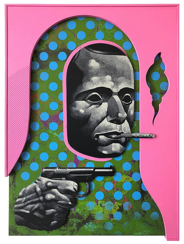 Thinkspace Projects is excited to share a very special edition from Super A. Based on the original work of the same name in his recent solo exhibition Apostasy, this unique edition is printed on an actual U.S. government note. Limited to only 50 copies and housed in an acrylic presentation holder.