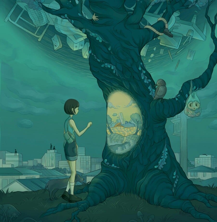 Chloe Chen’s aesthetic is influenced by the years she spent studying in Japan and the wild psychological horror manga she discovered there. Her colorful, modern, manga-leaning style is infused with feelings of anxiety, fear, and horror, and is influenced by old Japanese horror comic artists Kazuo Umezu, Shintaro Kago, and Suehiro Maruo. Her art reflects her worldview as a teenager and artist in the 21st century, mixing beautiful and ugly, bizarre and real, and opposing forces and concepts that coexist in her work.