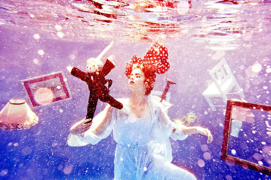 For anyone interested in shooting sub-aquatic, Beth has some interesting advice. She explains that the lack of gravity is visually appealing. “It transforms the scene and moves it into the realm of surrealism.” Additionally, the aquatic stage gives her photos a “painting-like” feel, that this impossible moment is frozen in time. Unfortunately, the process is strenuous and has taken her years to refine. The coordination involved between the stage, the props, the photographer and the model all depend on one moment being perfect. Not to mention underwater photography is also weather dependent.