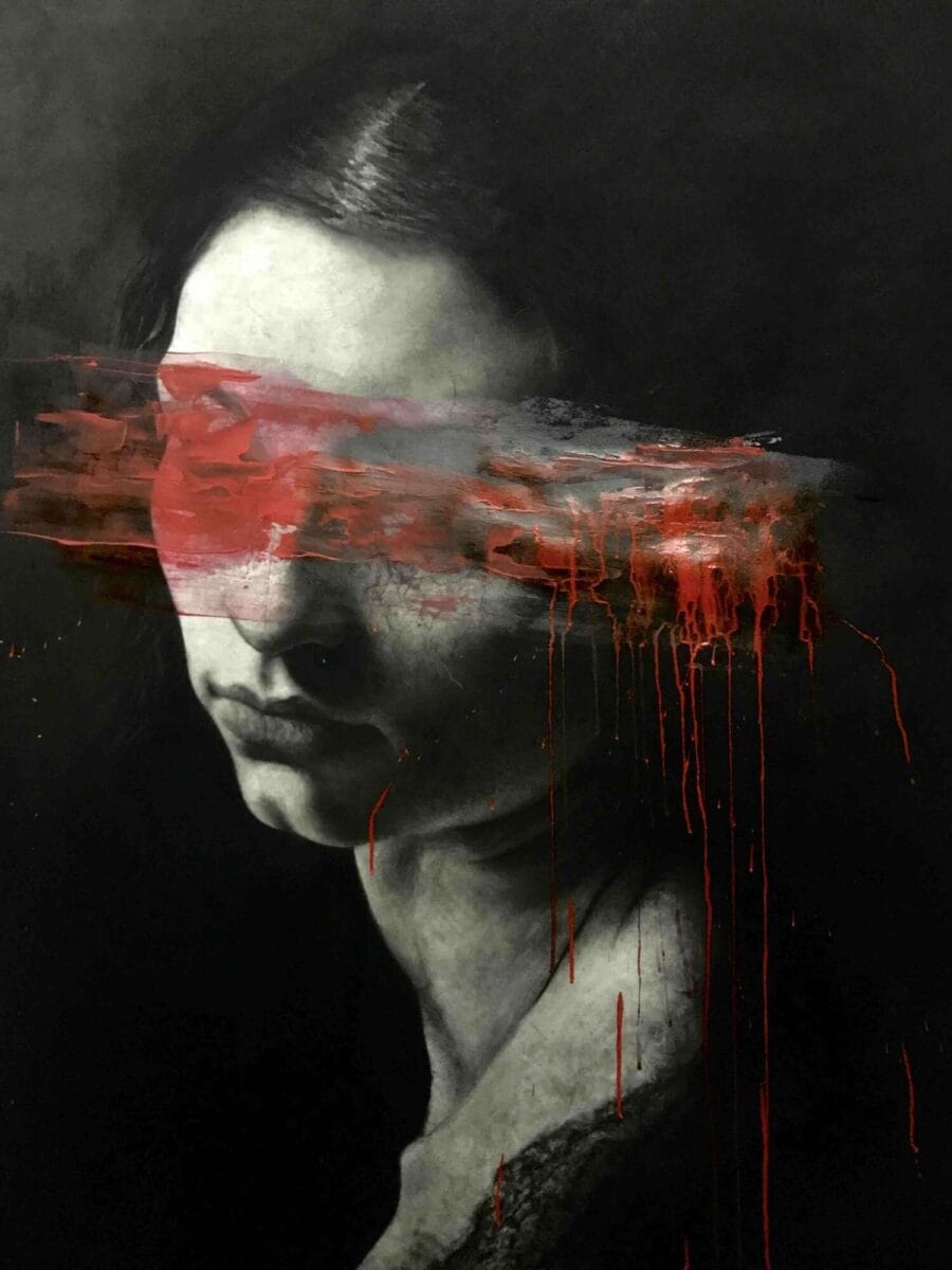 His evolving aesthetic can perhaps be described as Postmodern or Contemporary realism. His orchestrations amalgamate Italian Renaissance idealism, Northern realism and Baroque drama, which has been further interspersed with outsider and graffiti art. He uses, blends and melds the teachings of the Old Masters; adopting and adapting the sfumato, chiaroscuro and luce di cantina techniques to suit his needs and his whims.
