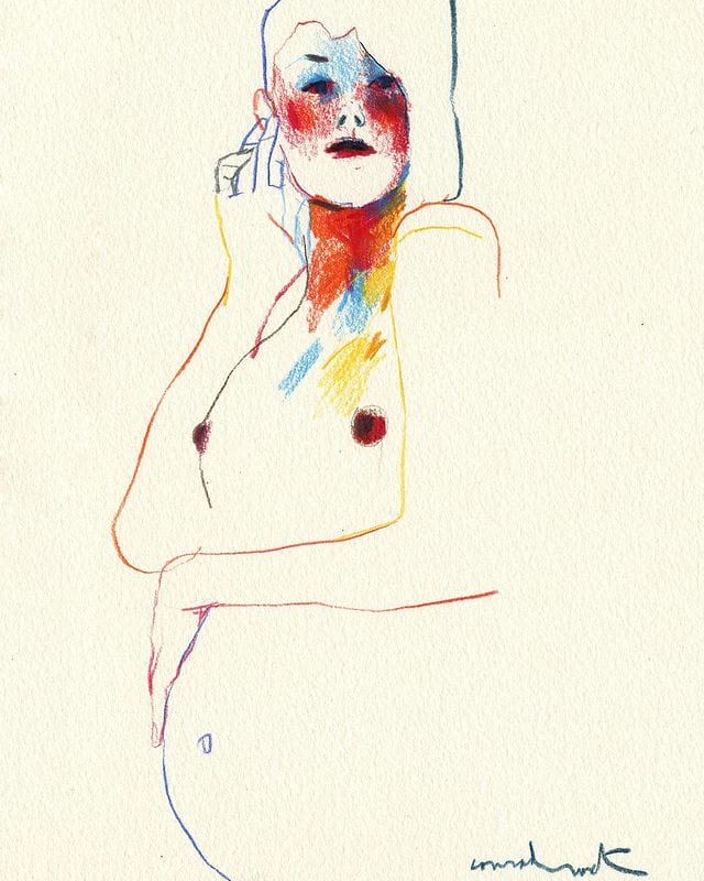 Conrad’s world has never been a static one. He spent a good chunk of his life in Terrassa, Spain from childhood to his late 20s drawing with markers and filling up sketchbooks. He moved to Barcelona, and attended the Joso School, then the Faculty of Fine Arts. His personal work on social media eventually caught the attention of Spanish clothing retailer Zara. Once he got a feel for how his trade worked, Conrad became a freelancer. He’s worked on ads for big name companies over the years like Adidas, Nike, and Coca Cola, but his personal collection of flower-decked muses obviously has a special place for him. His main inspiration is Egon Schiele. The Austrian impressionist’s patchwork shading of nude figures contorted and stretched to the body’s physical limits left a mark on Conrad. Schiels’ unique style was emulated in Conrad’s own work over the years.