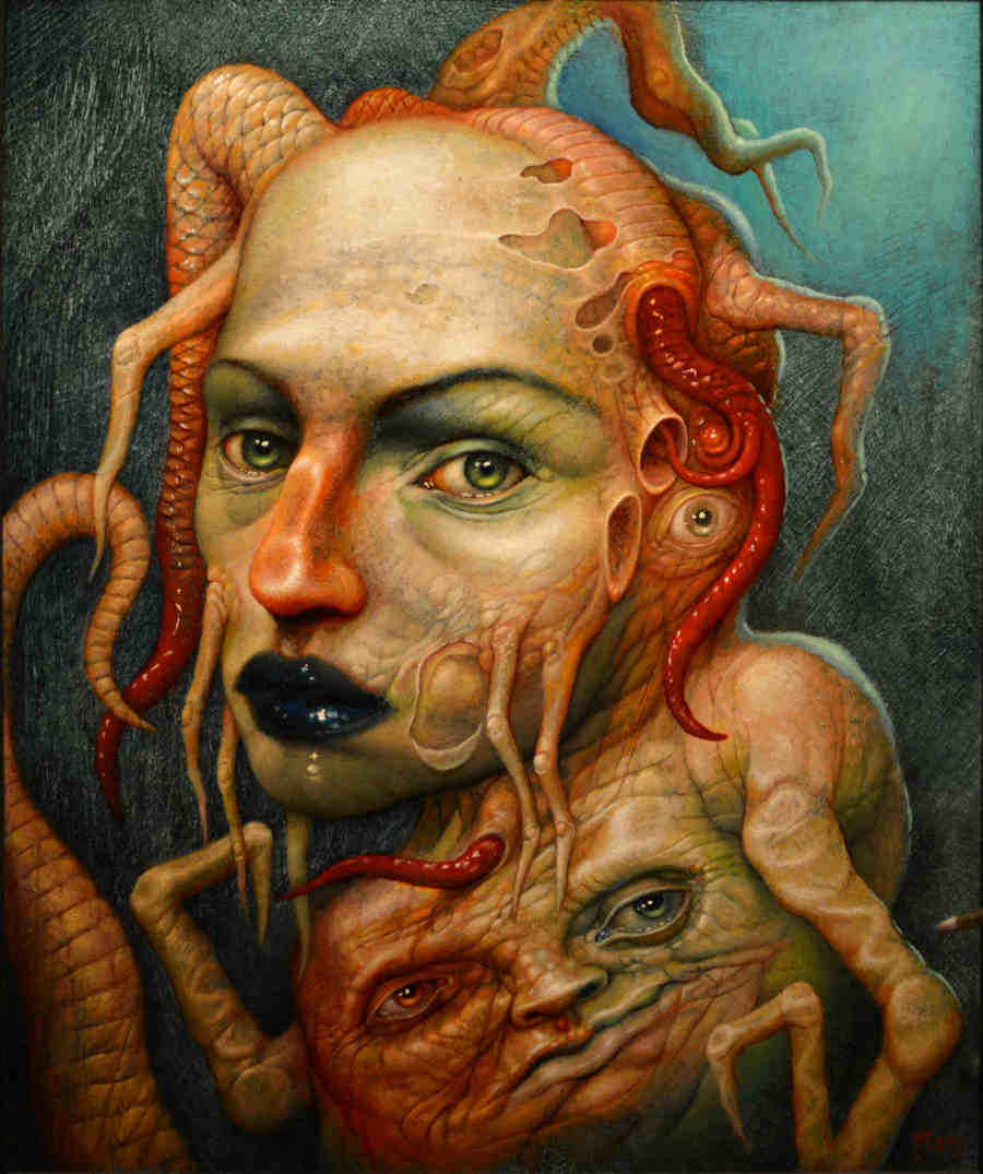 These two exhibitions work together with true harmony. Many of the artists exhibiting have been interviewed on the well-known Dark Art Society podcast, hosted by dark artist and curator Chet Zar. Chet is a well-known creator. He has worked across the fine art, music and movie industries to bring his visions to the wider world, doing everything from creating digital animations for the band Tool’s live shows, to creating characters for Guillermo del Toro films. The Dark Art Society itself is a cooperative of Dark Artists, led by Chet Zar. Impressively, the society pools together resources to provide valuable information to artists, collectors and the general public, to promote this genre of and support the greater good of the Dark Art movement.