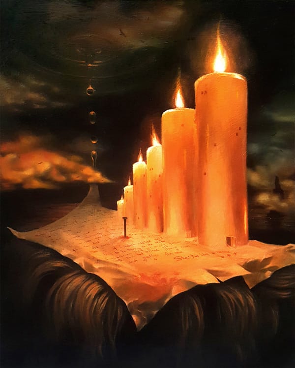Haven Gallery is pleased to present “Songs of Maldoror”, a solo show of new oil paintings by Ukrainian born artist Rain. “Songs of Maldoror” is Rain’s first solo show at the gallery and is made up of 10 paintings illustrating the novel of the same title, originally written in French as “Les Chants de Maldoror”, by writer Comte de Lautreamont, published in 1868-1869. Rain has illustrated moments depicted from the novel’s poetic cantos that represent a myriad of moments of contemplation and action by the main character, anti-hero, Maldoror. The publication itself seeks to question our true nature and contemplate our primal urges.