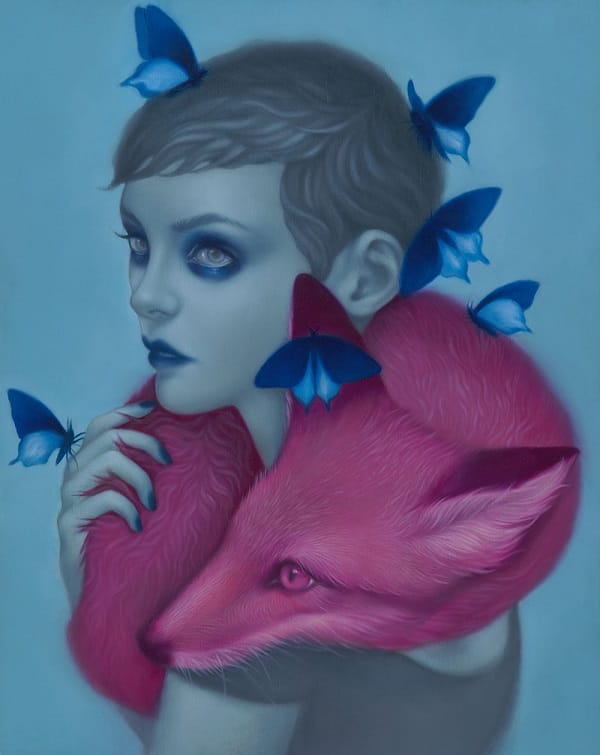 Syd Bee is a Seattle-based painter whose work seems plucked directly from the dream world. Bee uses rich, rosy tones in much of her art while exploring somber themes and emotions, and the marriage of these opposing elements gives her pieces a surreal, otherworldly quality. This dichotomy invites the viewer to dive deep into her beautifully eerie art, exploring the story told in each piece.