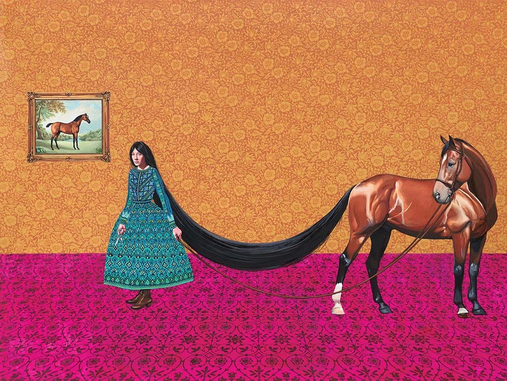 Inside issue 52 we explore the work of Kyla Zoe Rafert, a rare artist whose studio practice and home life are inseparable. The ink that begins every one of her strange and beguiling works is made from walnuts harvested on her five-acre homestead in rural Ohio. The cast of young women and girls populating Kyla’s work are engaged in arresting narratives, full of symbolism. The patterning in her paintings might remind us of homespun folk art, but the compositions and the vibrant colours belong very much to the present. Kyla’s subject is the often-conflicting roles expected of women in today’s world. What views of women linger from the past? And what expectations may continue into the future? Kyla is not afraid to pose challenging questions about her own experiences and her daughters’ future– not just to us, but also to an art world that can sometimes be monolithic in opinion. There’s a lot of hidden courage behind these quiet tableaus.