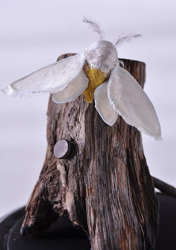As I mentioned above, I love using found materials, vintage fabrics, threads, beads, etc., and natural materials. I’ve lately been on a big floral kick, using a lot of vintage haberdashery materials like tiny faux flower stamens, miniature paper flowers and lichen. For sculpting, I mostly use metal dental sculpting tools. I am also a fan of Kemper tools for wire or ribbon modelling tools, and Valdez wire tools – they are strong and sooo tiny! Probably the most used tool I have is a good old Xacto knife.