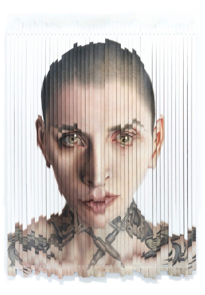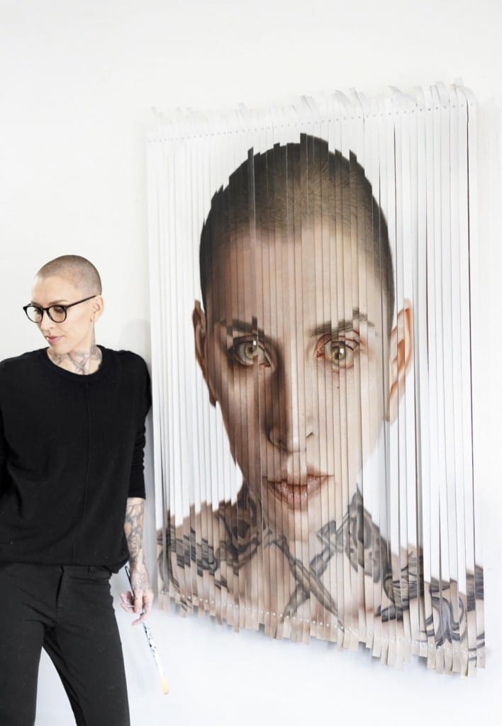 Kit King is a contemporary artist that has shown her work on a global platform. Kit’s art is often created on a large scale and has this magical ability to draw the viewer into her work. Her previous oil paintings have evolved into shredded pieces that are now reconstructed by hand to form a whole piece symbolizing the need to both create and destroy. Her portraits leave the viewers wondering about the messages behind the deconstructed pieces. I often wondered what Kit thought of herself personally, as she allows the viewer to see so many sides of herself within her work. Some pieces are disturbing to look at, others are very intriguing but all are appreciated by my eyes and are viewed as a visual feast. I have admired Kit and her work for years.