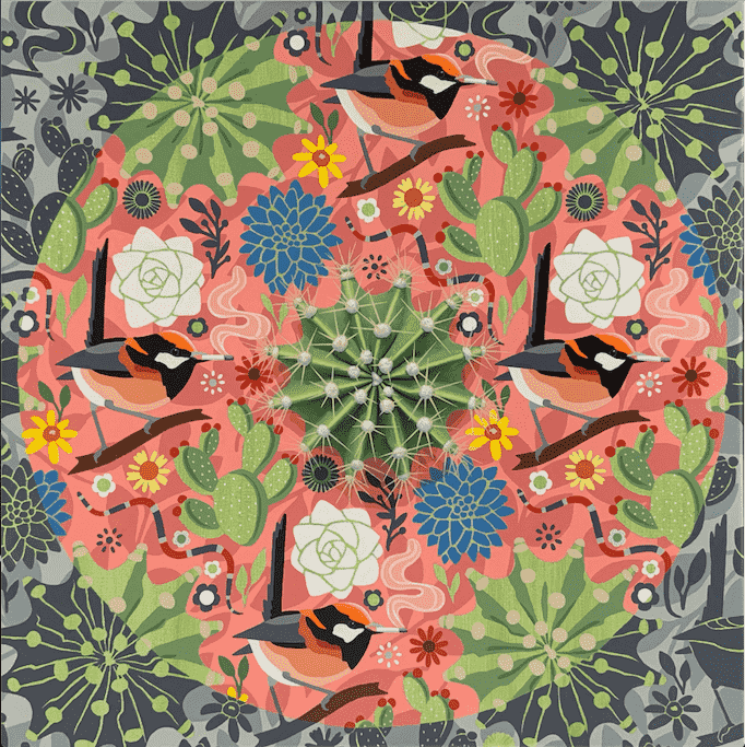 Bursting at the seams with expressive design complexities, visionary aesthetics, and captivating narratives, this body of work encompasses the distinguishing style and symbolism of the artist at his best. Reflecting on various social themes, the authentic composition feels like a stroll through nature with an unexpected twist. Enjoy!