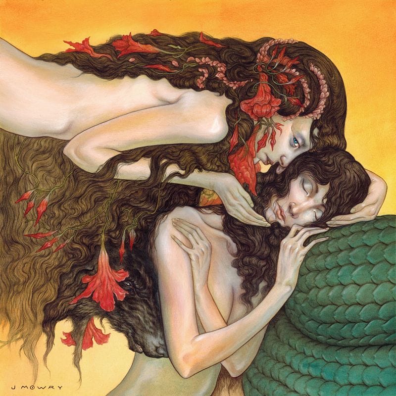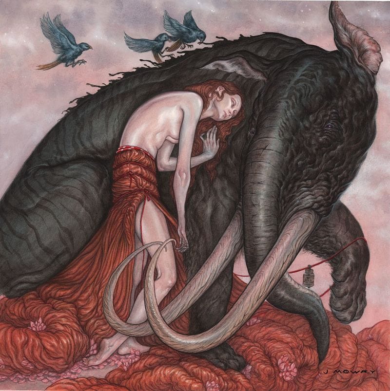 Haven Gallery is pleased to present “Eternal Return”, a collection of new work by Jason Mowry. “Eternal Return” is Mowry’s second solo show at the gallery and will include nine gouache and watercolor paintings that present the art of storytelling through dynamic and otherworldly palettes and narratives. Mowry is a visual raconteur whose inspiration stems from the mythologies of antiquity throughout contemporary comics, all culminating into his own personal narratives. A nod to a bygone era and its simpler times are cultivated as the relationships between humans, nature and the animal kingdom are celebrated. Surrealist tendencies reminisce in his dreamy use of color and contortions of verisimilitude as symbiosis and ascension of a higher power of nature are embraced. “Eternal Return” serves as a reminder to return to our instincts and harness our dreams and intuitions. Laced with symbols and reverie, a purer harmony amongst existence in all of its forms is encouraged. The natural dichotomies of life and death are ever present with a grace and reception as the organic cycle of all matter. Mowry’s work prompts us to look to the past for guidance on the present and future, as this former period holds a significant place in our very being.