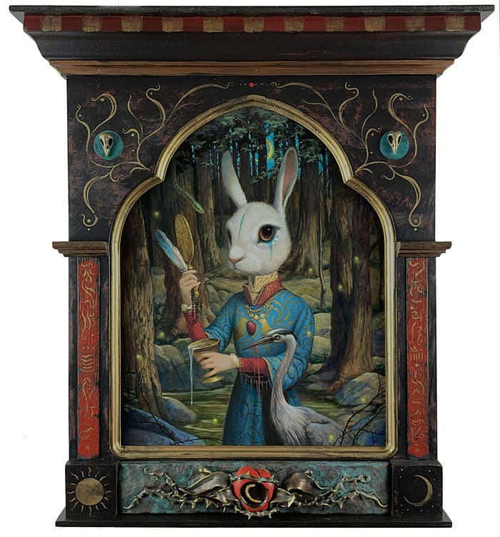 Modern Eden Gallery Press // “Metamorphosis” highlights four dynamic artists whose work is imbibed with imaginative and allegorical narratives. Such work exists at the forefront of history and culture, and these artists explore the “edges” with the tools of metaphor and dreams, through the interpretive language of symbol and form. What is brought back from the edge, and recorded with paint or with clay, maps new geographies from which to more accurately triangulate our view of self and environment. “Metamorphosis” explores these concepts at the intersection of magic and realism, and celebrates the transformative nature of nature itself.