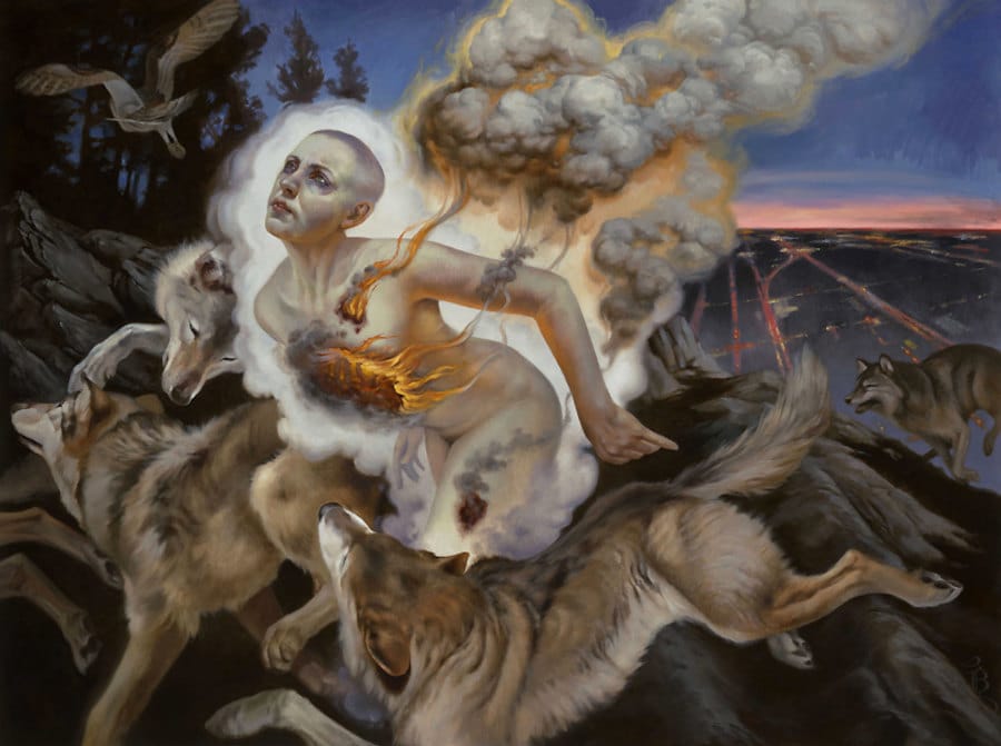 Copro Gallery presents a solo exhibition by artist Tex Buss. This will be her first exhibition at the gallery and features her most recent oil paintings. Tex’s work is both illustrative and figurative, and features elements from the natural world. She began studying art at the School of Visual Arts in New York, with a focus in photography and painting. After College she travelled and worked as a painter of signs and portraits. Her love of art took her into varied directions, including an ongoing career in tattooing at Red Kestrel Tattoo, as well as oil painting with a heavy focus on figurative work. Tex has been tattooing in San Francisco for over 25 years.