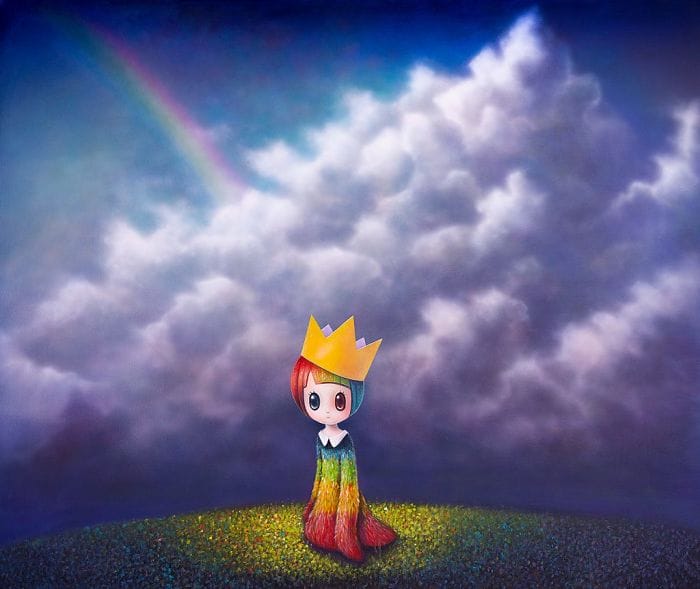 Other major influences apparent in Ueno’s works include Japanese Animé, specifically Manga and Studio Ghibli, particularly the works of artist and filmmaker Hayao Miyazaki, and theatrical pictorial conventions borrowed from art history, like the memento mori typical of the Baroque or the Northern Renaissance’s penchant for Vanitas, both devices prophetic heralds emphasizing the inevitability of human mortality. Ueno has been known to appropriate classical works of art as well, directly reinterpreting them through the cast of his aesthetic; Johannes Vermeer’s mid-seventeenth century, The Milkmaid, and Manet’s Impressionist masterpiece, A Bar at the Folies-Bergère, for instance, have both made appearances in Ueno’s current repertoire.