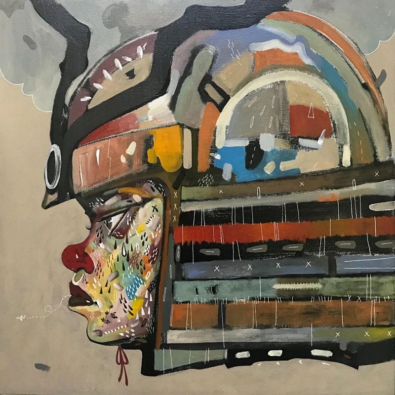 Acrylic, oil, and aerosol paint are my choice of medium in painting, a lot of times I often let accidents like drips smudges and splatter help me to decipher on what to do, I do start with a very loose abstract figures to overcome the fear of an empty canvas staring at me. In this collection of work, I try to become personal as possible, using ohlala as my main character to depict some of my experiences that leads me to where I am right now as an artist”.