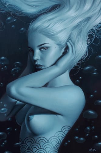 I believe some of my work carries that, yes. Sometimes it’s intentional, though it can also be hard to look at your own work and objectively dissect it when so much is based off intuition. The surreal aspects I often follow up on spontaneously and they tend to just ‘feel right’ at the time. Even if I’m not wholly certain of the meaning, they add to my imagery in a meaningful way. I sometimes like using them to underline a particular psychological or emotional concern to the figures, as well as feeling they give more abstract ideas illumination. Though I have a hard time saying my work is actually surrealist, given the degree of surrealism approached by other artists, I love touches of it here and there to give my art a little more intrigue and escape.