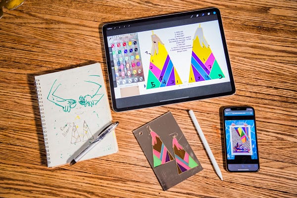 The collection is inspired by my Superpower series and Rainbow Ribbon Magic series, about women owning their power and expressing their creativity. I wanted to create the jewelry to give people permission to step into my art and transform into the fiercest versions of themselves, like the badass and empowered women in my paintings.