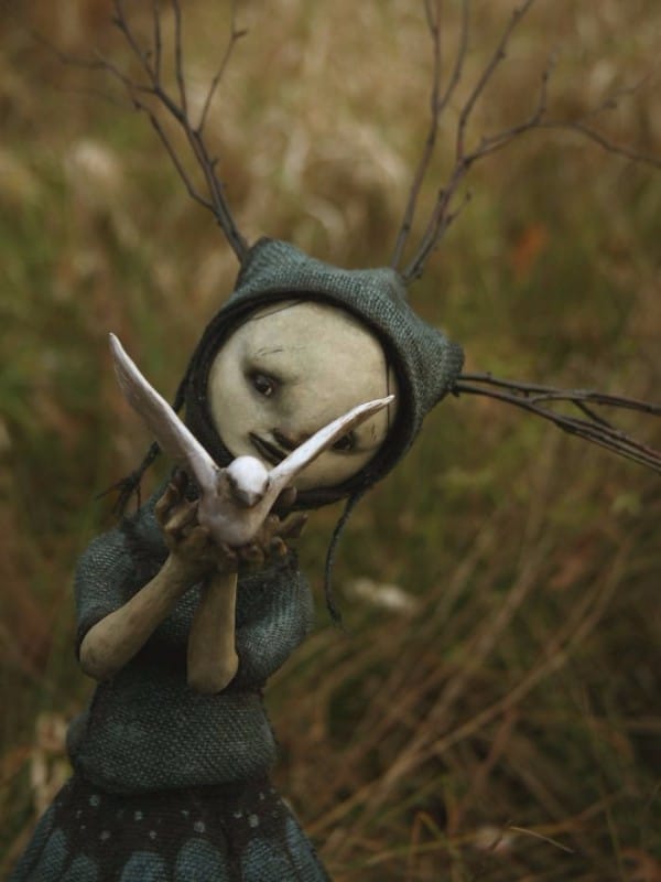 Scott brings to life interpretations of birds, bats, moths and dramatic witch-like creatures keeping the meaning behind these souls hidden and simple, allowing the viewer to explore their own meanings and conclusions. These beautifully macabre sculptures are further brought to life with Scott’s talent as a photographer, where they are captured at “home” amongst nature or hanging from large trees.