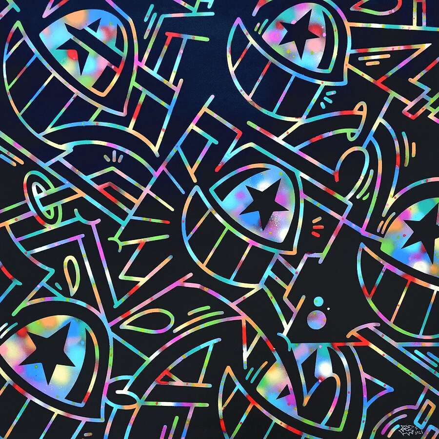 In this latest body of work, PEZ has curated his recent endeavors. Rather than feeling confined to the painting, the medium he is best known for, he explores a variety of mediums, creating a cohesive experience that immerses viewers in what he has dubbed the “PEZ Universe.” He asks his fans to travel to this fantastical place exploring all his different styles and mediums. Here, one can find sculptures, acrylic works, spray paint based works, wood cuts and other surprises. He aims to stimulate his signature joy in others.